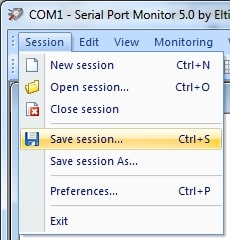 - Per farlo, accedi al menu principale di Serial Port Monitor e seleziona Sessione > Nuova sessione. In alternativa, puoi usare la scorciatoia da tastiera ‘CTRL + N’ o cliccare sull’icona ‘Nuovo’ nella barra degli strumenti.